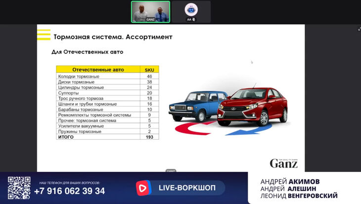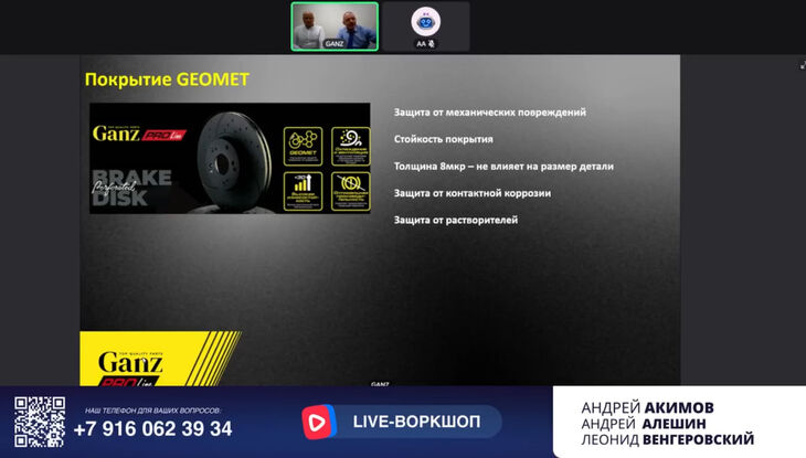 В прямом эфире спикеры обсудили ассортимент компании GANZ, особое внимание уделили тормозным системам. Представитель бренда рассказал о его истории и новостях. В конце спикер и ведущий ответили на вопросы подписчиков, провели викторину. Автор лучшего вопроса и победитель викторины получили призы.