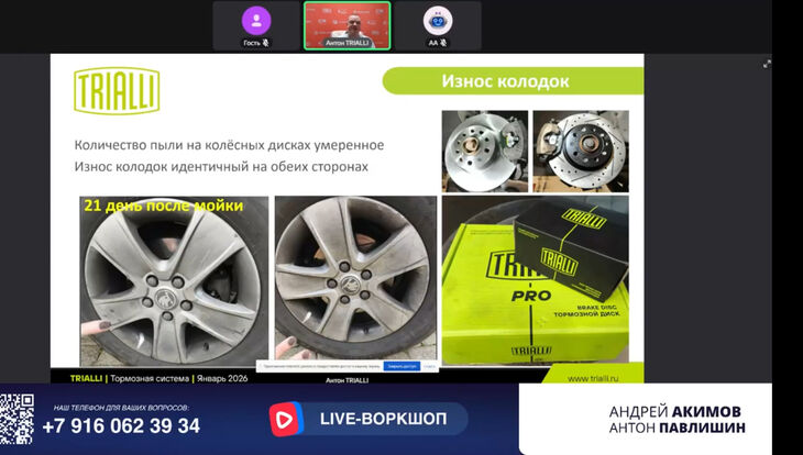 В прямом эфире спикеры обсудили ассортимент компании TRIALLI, особое внимание уделили тормозным дискам и колодкам. Представитель бренда рассказал о его истории и новостях. В конце спикер и ведущий ответили на вопросы подписчиков, провели викторину. Автор лучшего вопроса и победитель викторины получили призы.